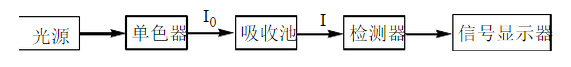 光度分析時(shí),分別將空白溶液和待測(cè)溶液裝入厚度為b的兩個(gè)吸收池中,讓一束一定波長(zhǎng)的平行單色光非別照射空白和待測(cè)溶液,以通過(guò)空白溶液的透光強(qiáng)度為I0,通過(guò)待測(cè)溶液的透光強(qiáng)度為I,根據(jù)上式,由儀器直接給出I0與I之比的對(duì)數(shù)值即吸光度。