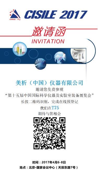 我司將參加于2017年4月6日-8日在北京國家會議中心(天辰東路7號)舉辦的第十五屆中國國際科學(xué)儀器及實驗室裝備展覽會(CISILE 2017)。