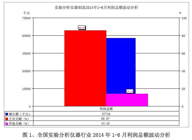 表1、全國(guó)實(shí)驗(yàn)分析儀器行業(yè)2014年(1-6)月經(jīng)濟(jì)運(yùn)行狀態(tài)
