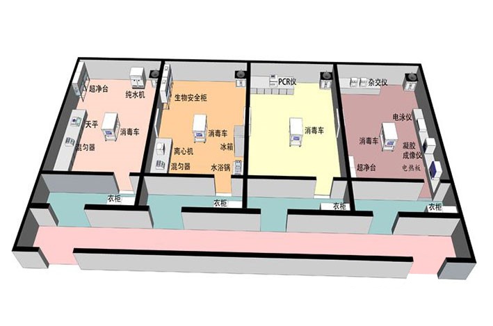 PCR即聚合酶鏈?zhǔn)椒磻?yīng),是分子生物學(xué)研究和實(shí)驗(yàn)的常規(guī)方法,也是生物學(xué)、醫(yī)學(xué)臨床等領(lǐng)域廣泛應(yīng)用的實(shí)驗(yàn)技術(shù)。其特點(diǎn)是能將微量的 DNA 大幅增加。實(shí)驗(yàn)室分為四個(gè)區(qū)域,進(jìn)入各工作區(qū)域必須嚴(yán)格按照單一方向進(jìn)行,不同的工作區(qū)域使用不同的工作服(例如不同的顏色)。工作人員離開各工作區(qū)域時(shí),不得將工作服帶出,四區(qū)域分別為: