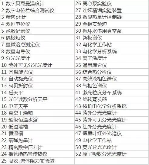 以上儀器分類清單僅供參考,很多儀器在各類實(shí)驗(yàn)室中都有使用,具體儀器配置應(yīng)根據(jù)自己實(shí)驗(yàn)室的具體檢測(cè)需求確定!