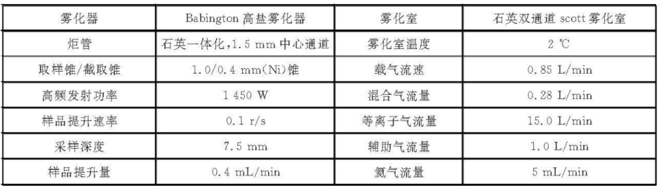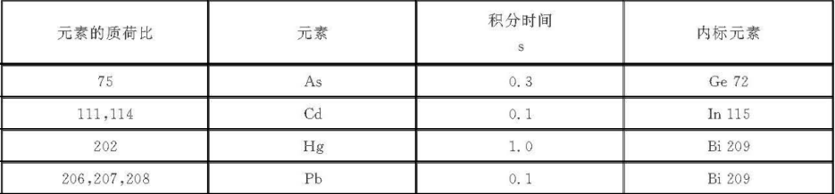 按照ICP-MS儀器的操作規(guī)程,調(diào)整儀器至最佳工作狀態(tài),參考條件參見附錄A;分析中應(yīng)用內(nèi)標(biāo),采用ICPMS分析方法中內(nèi)標(biāo)校正定量分析方法測(cè)定。待儀器穩(wěn)定后,按順序依次對(duì)標(biāo)準(zhǔn)溶液、空白溶液和試樣溶液進(jìn)行測(cè)定。