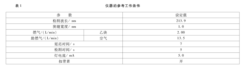 按照儀器說(shuō)明書將儀器工作條件調(diào)整到最佳狀態(tài),儀器操作的參考條件見(jiàn)表1。
