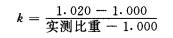 按式(1)計(jì)算尿樣換算成標(biāo)準(zhǔn)比重(1.020)下的濃度校正系數(shù)(k)。