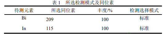 以內(nèi)標(biāo)法進(jìn)行檢測(cè),Bi以In為內(nèi)標(biāo)。因鉍無(wú)同位素引起的質(zhì)譜干擾,檢測(cè)模式選擇標(biāo)準(zhǔn)模式即可,選用的檢測(cè)模式及同位素見表1。