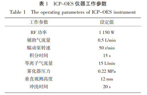 電感耦合等離子體發(fā)射光譜儀(上海美析儀器有限公司);高性能同心霧化器。儀器工作參數(shù)條件見(jiàn)表1。