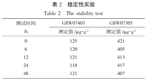 通過(guò)上述實(shí)驗(yàn)結(jié)果表明樣品前處理完畢后,48h內(nèi)樣品均處于穩(wěn)定狀態(tài),樣品測(cè)試結(jié)果重現(xiàn)性較好。