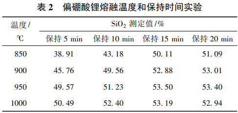 2.4偏硼酸鋰熔融溫度和保持時(shí)間的選擇