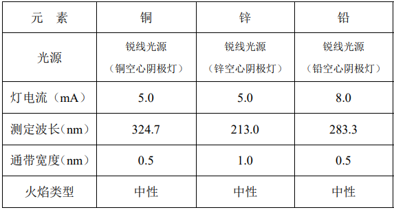 光源:銅、鋅、鉛元素銳線光源或連續(xù)光源。
