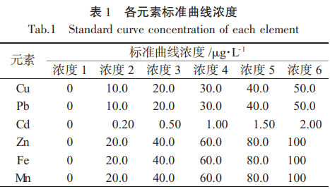 1.2.1標(biāo)準(zhǔn)曲線濃度將6種標(biāo)準(zhǔn)溶液分別逐級(jí)稀釋至所適用濃度,稀釋液用5%稀HNO3,形成使用液,貼好標(biāo)簽備用。為避免干擾,不建議配制混合標(biāo)準(zhǔn)使用液。詳見(jiàn)表1。