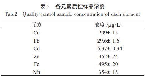 1.2.2質(zhì)控樣品濃度將有證標(biāo)準(zhǔn)物質(zhì)按標(biāo)準(zhǔn)證書(shū)配制,根據(jù)標(biāo)準(zhǔn)曲線范圍稀釋后貼好標(biāo)簽備用,濃度見(jiàn)表2。