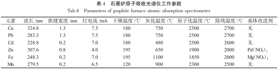 優(yōu)化儀器操作條件,使待測(cè)元素的靈敏度等指標(biāo)達(dá)到分析要求。各元素測(cè)定條件見(jiàn)表4。