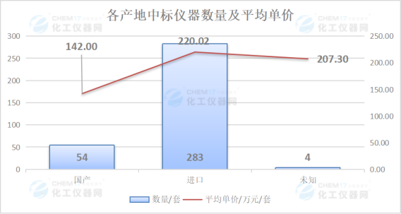 從“各產(chǎn)地中標(biāo)儀器數(shù)量及平均單價(jià)”來看,排除未知品牌,11月國產(chǎn)質(zhì)譜儀的中標(biāo)數(shù)量為54套,平均中標(biāo)金額為142.00萬元/套;進(jìn)口質(zhì)譜儀的中標(biāo)數(shù)量為283套,約占11月份質(zhì)譜儀中標(biāo)總數(shù)量的82.99%,平均中標(biāo)金額為220.02萬元/套,約是國產(chǎn)質(zhì)譜儀平均中標(biāo)單價(jià)的1.5倍。