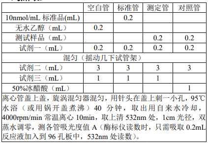 注:①、對照管每個樣本都需要做,表內(nèi)所有試劑可以按比例增大或縮小,結(jié)果不變。