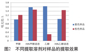 圖1 7種提取溶劑對粉色樣品的試驗結(jié)果