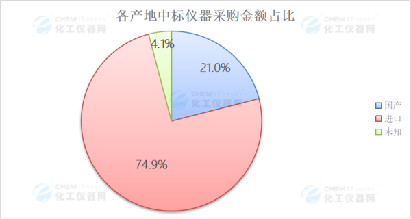 從“各產(chǎn)地中標(biāo)儀器采購金額占比”數(shù)據(jù)來看,7月國(guó)產(chǎn)質(zhì)譜儀的中標(biāo)金額為5,305.68萬元,約占7月質(zhì)譜儀中標(biāo)總金額的21.0%;7月進(jìn)口質(zhì)譜儀的中標(biāo)金額為18936.2685萬元,約占7月質(zhì)譜儀中標(biāo)總金額的74.9%,進(jìn)口質(zhì)譜儀的中標(biāo)金額約是國(guó)產(chǎn)質(zhì)譜儀中標(biāo)金額的3.6倍。與6月的4.5倍相比,國(guó)產(chǎn)質(zhì)譜與進(jìn)口質(zhì)譜之間的金額差距逐步縮小。