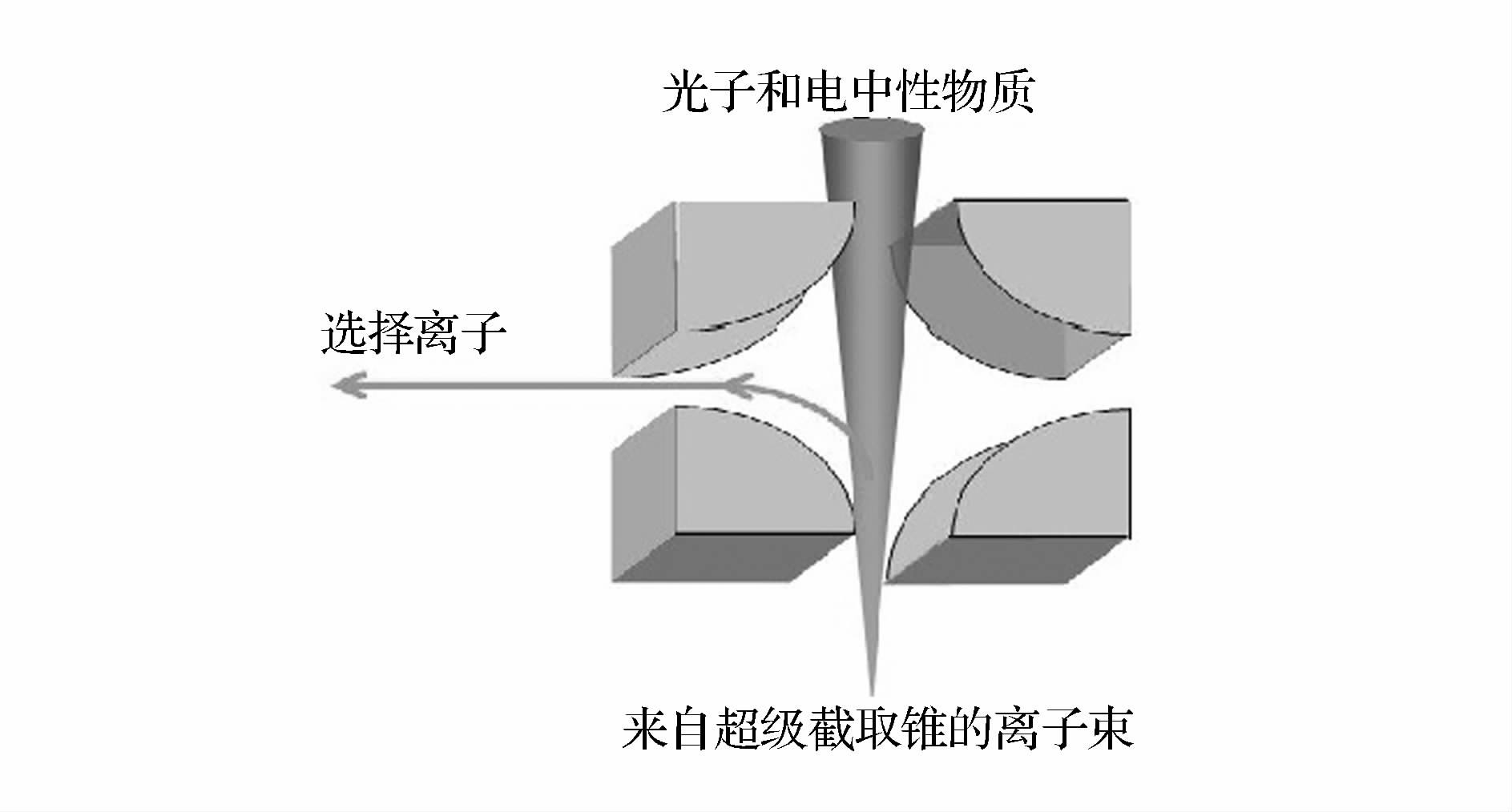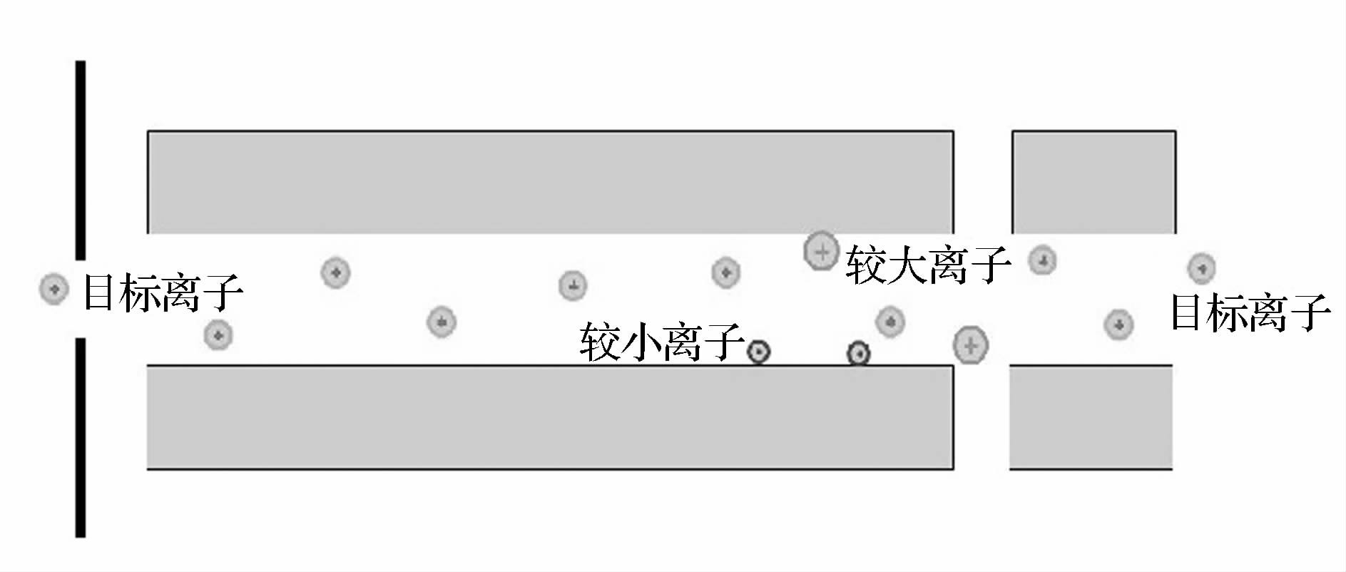 四級桿分析器是由四個平行的導(dǎo)電棒組成的質(zhì)量過濾器,如圖6所示,只有滿足質(zhì)荷比要求的目標(biāo)離子才能在任意時刻通過質(zhì)譜儀,不符合要求的較大離子或較小離子均會被四級桿過濾掉。四級桿分析器不需要日常維護。