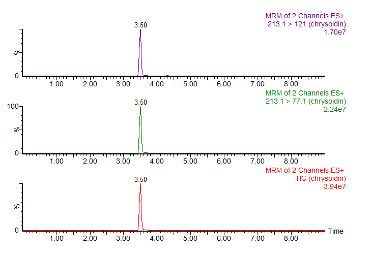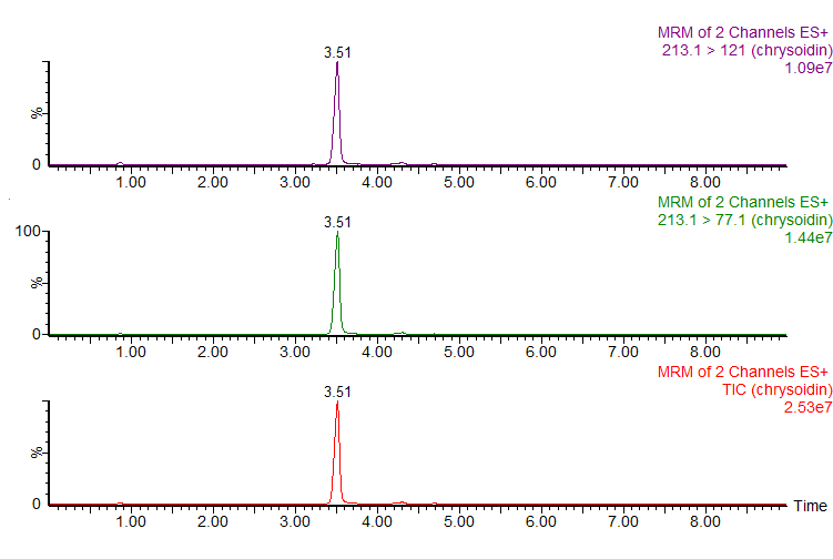 堿性橙2多反應(yīng)監(jiān)測(MRM)色譜圖