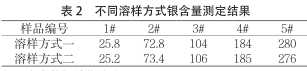 采用方式一溶解樣品,試液底部有少量沉淀物;采用方式二溶解樣品,試液清亮。對(duì)以上兩種方式溶解得到的試液中的銀含量進(jìn)行測定,測定結(jié)果如表2所示。