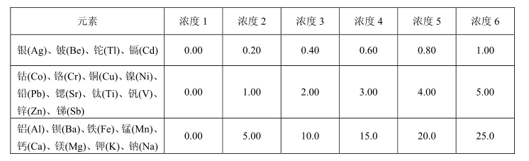 根據(jù)元素間相互干擾的情況和標準溶液的性質(zhì)分組制備,其濃度應(yīng)根據(jù)分析樣品及待測元素而定,標液的酸度盡量與待測試樣的酸度保持一-致,均為1%的硝酸。