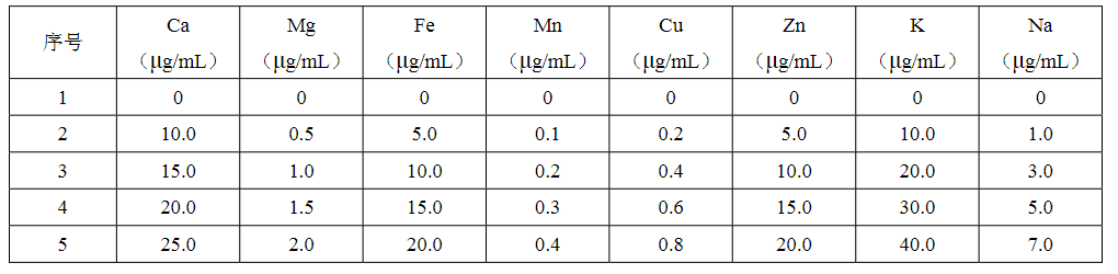 混合標(biāo)準(zhǔn)溶液各元素的濃度